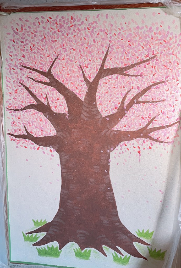 最後にtoi toiのお部屋の壁に桜の木を先日描いていただきましたので、参加者さま達で桜を咲かせました🌸壁に描くのって楽しいですね^_^
