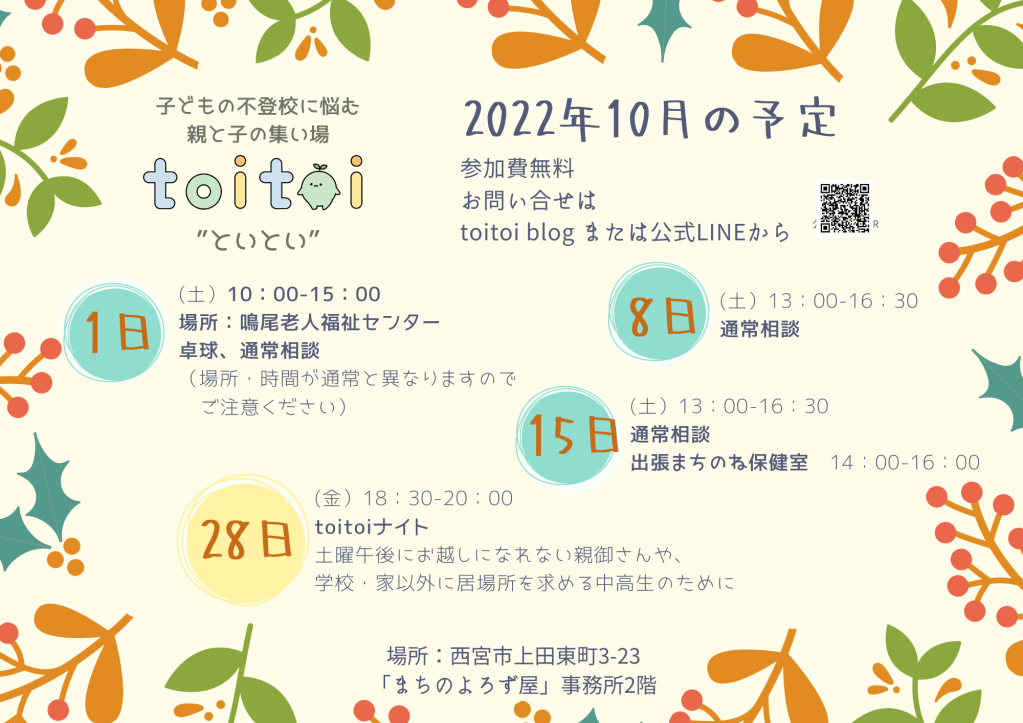 toitoi10月の予定をお知らせします。