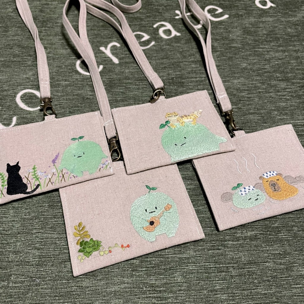 toitoiのゆるキャラとそれぞれスタッフの好きな物を手刺繍したネームホルダーになりました。見かけたらtoitoiのスタッフだーと気軽に声をかけていただければ嬉しいです。