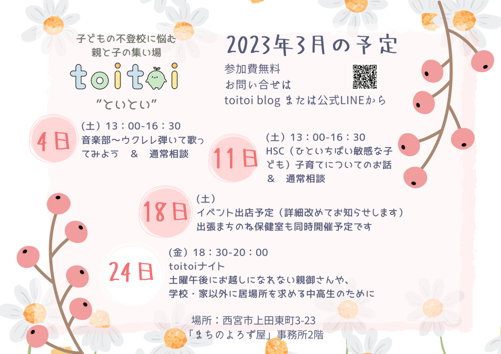 出張まちのね保健室は、学校に行きづらい子どもの子育て経験がある看護師さんがtoitoiに来られます。お子さんの健康面やご自分の体調など、気になることをご相談ください。