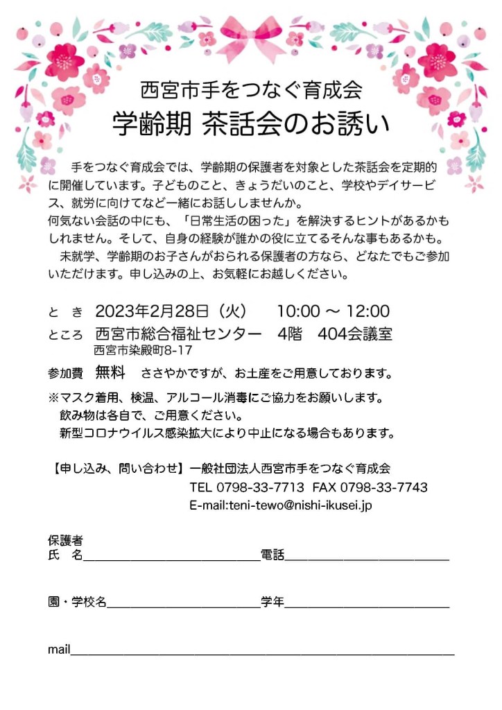 PTAとも連携している手をつなぐ育成会の茶話会です。当事者の親ごさんが運営しています。
