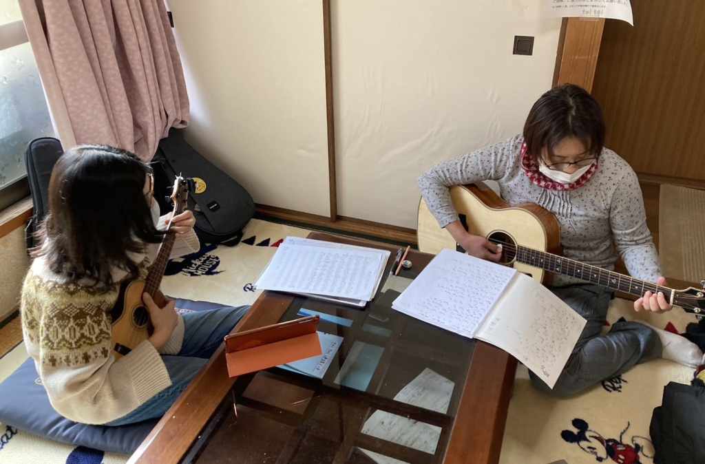 toitoiでは音楽部を再開しています。3月4日は、18日のマルシェ(詳細判明しだい広報します…)の準備をしつつ、ウクレレやギターを弾いて、涙そうそうなどを歌いました。