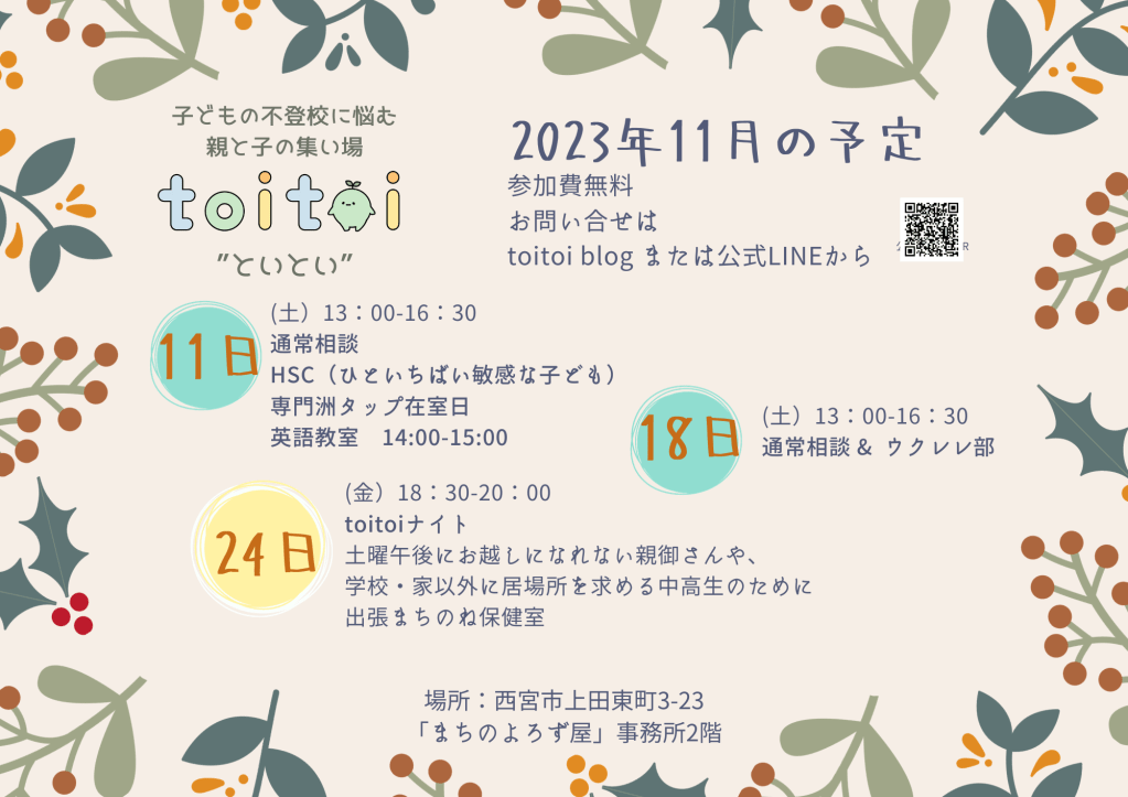 toito11月の予定をお知らせします。