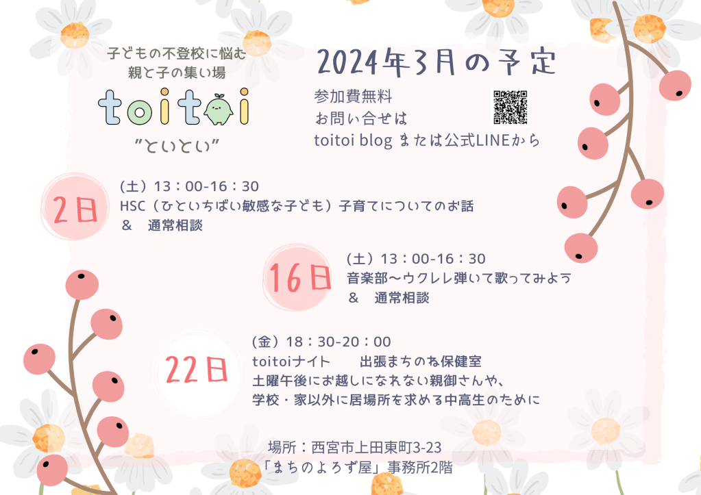 toito3月の予定をお知らせします。