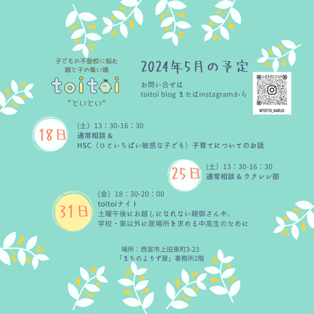 ☆5月18日土曜日13 :30〜16:30 通常相談HSC相談スタッフ在室日