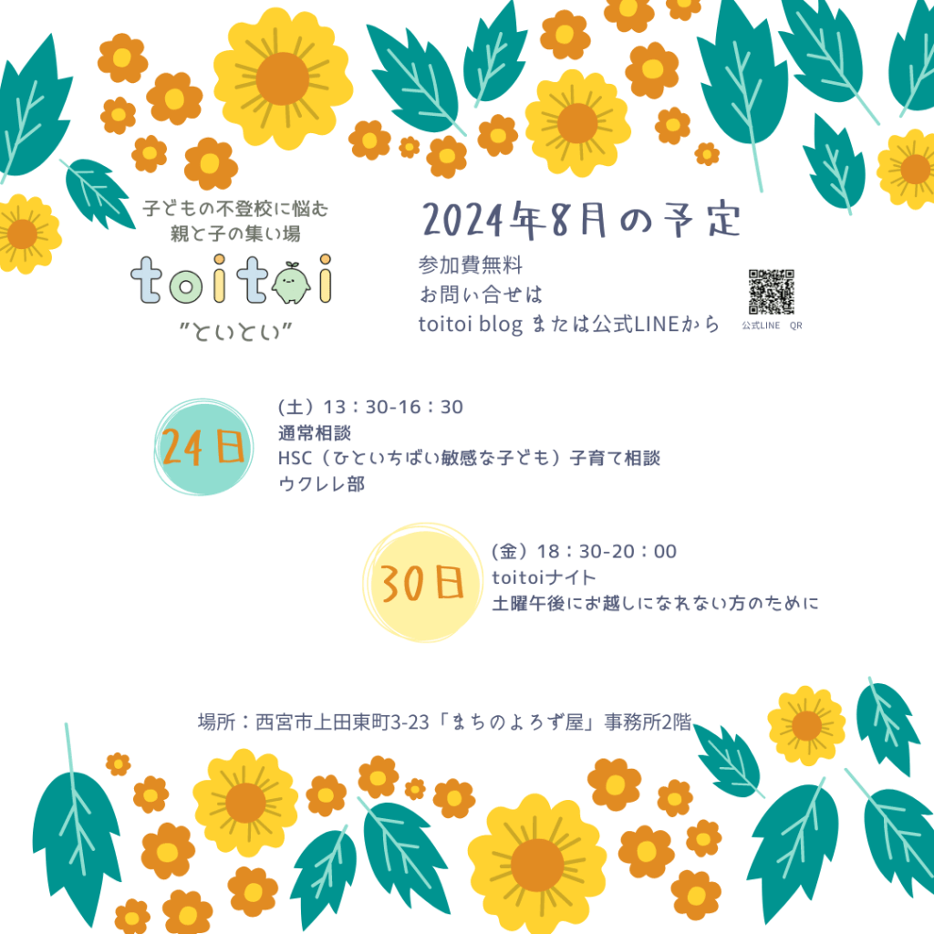☆8月24日土曜日13 :30〜16:30 通常相談 HSC相談スタッフ在室日 ウクレレ部