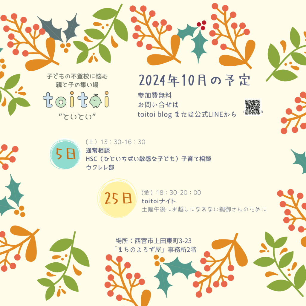 ・専門スタッフが在室する日は、HSC(ひといちばい敏感な子ども)子育てについてお話しできます。